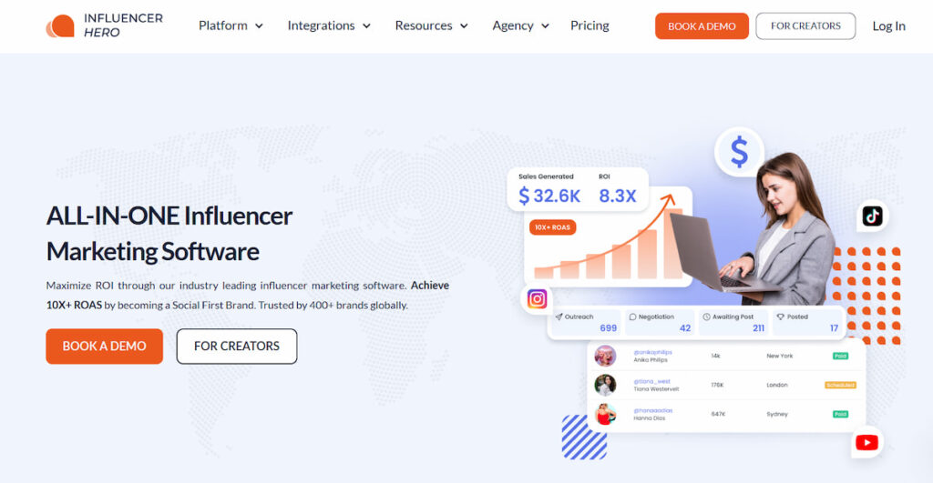 Pricing for Influencer-Hero is customized based on business needs, with packages for small brands, growing companies, and agencies. A free trial isn’t available, but businesses can request a demo through the website.