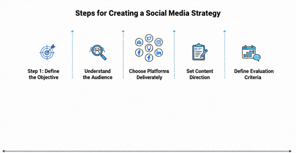 A strategy needs a clear sense of what is expected to change because social media is involved. That change might relate to visibility, demand, loyalty, or perception. Each option leads the work in a different direction. Tone shifts. Content choices shift. Even the meaning of “good results” shifts.