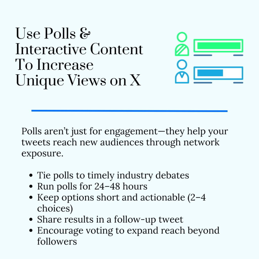 - Share poll results in a follow-up tweet to start a second distribution wave.